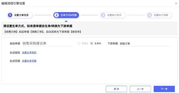 對于上述場景中涉及的某些復雜或非標準化業(yè)務單據(jù),TOP平臺允許用戶自定義新規(guī)則,并將其融入原生系統(tǒng)中。這意味著,無論是單據(jù)間的轉換邏輯還是全新的單據(jù)生成規(guī)則,都可以通過TOP平臺實現(xiàn)定制化開發(fā),進一步豐富ERP系統(tǒng)的功能性和靈活性。