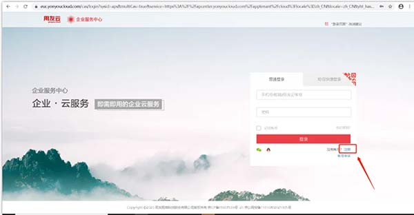 1)若租戶(hù)管理員手機(jī)號(hào)使用過(guò)用友其他云產(chǎn)品,可直接登陸企業(yè)服務(wù)中心,無(wú)需注冊(cè);