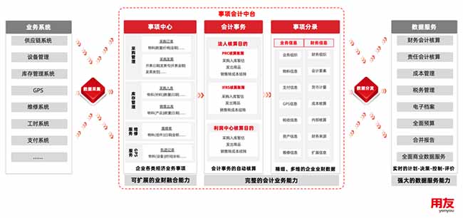 事項會計中臺作為業(yè)財融合的橋梁,以中臺化的架構、大數(shù)據(jù)技術支持業(yè)務財務處理和數(shù)據(jù)服務,全方位實現(xiàn)財務管理的數(shù)智化。