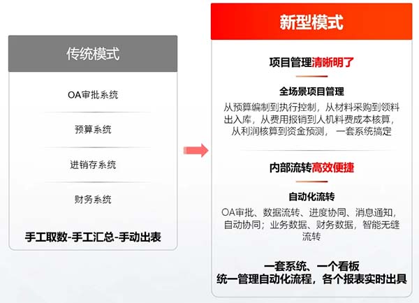 王總作為公司負責人,遇到最大的難題是:承接項目后,從立項-需求評審-圖紙設(shè)計-技術(shù)研發(fā)-測試運維-上線跑通-驗收-質(zhì)保,每個項目的階段進度圖、合同款、收入確認額、支出確認額、材料采購入庫明細、材料出庫明細、各項費用明細等如何清晰統(tǒng)計,項目利潤如何實時核算。