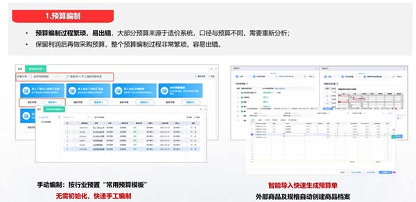 預(yù)算編制:支持手工編制,更支持智能導入,比如廣聯(lián)達、鴻業(yè)系統(tǒng)等預(yù)算直接能導入進來
