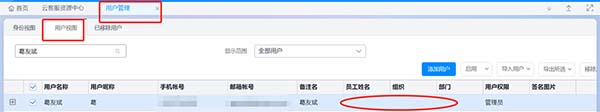 2、已啟用人力云:人力云 > 組織與員工管理 > 員工管理 > 員工信息 > 員工信息 中新增員工后直接到用戶管理中新增用戶,關(guān)聯(lián)員工身份;