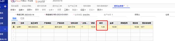 8.發(fā)料完成以后填制委外入庫單,并將對(duì)應(yīng)的加工費(fèi)錄入